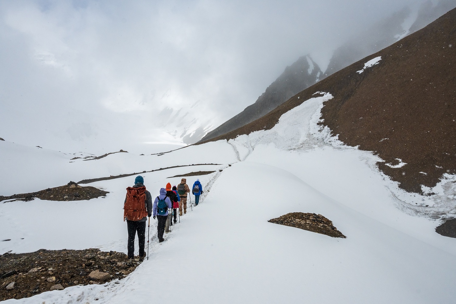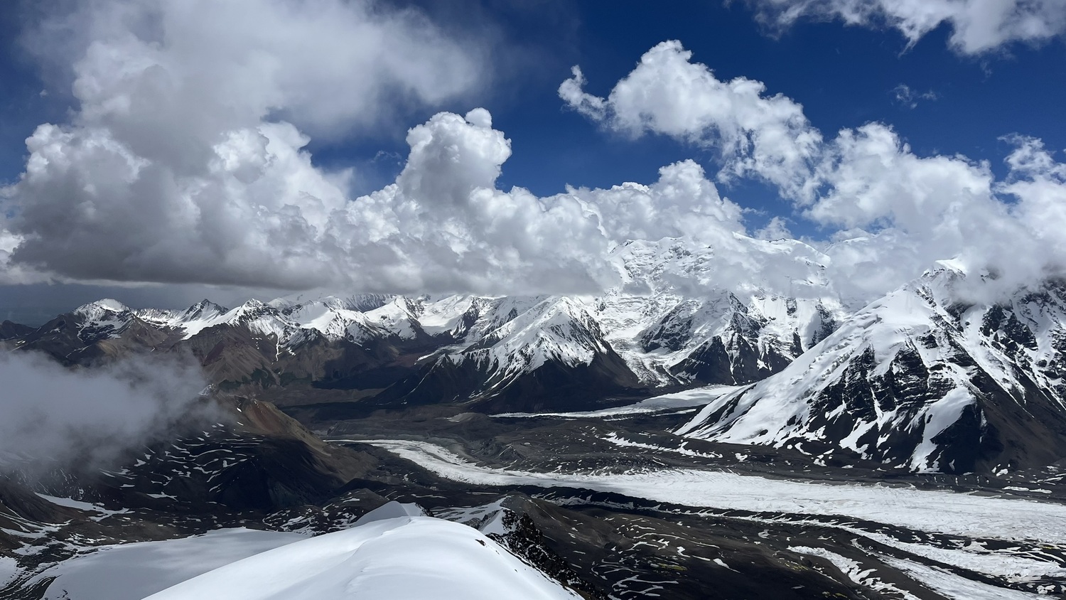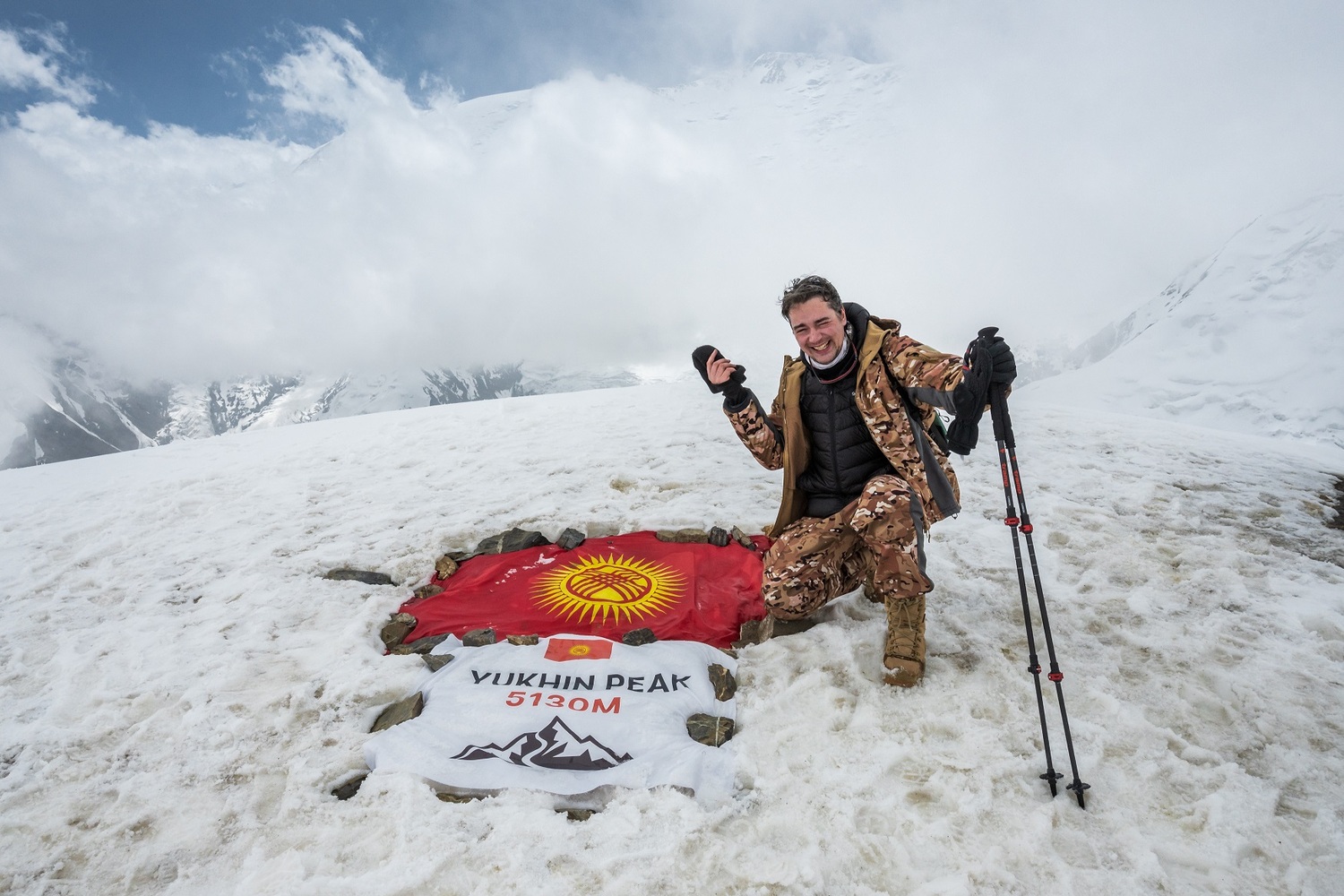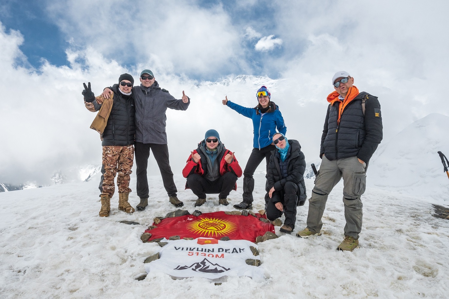 Проверяем снаряжение и стартуем наверх, на вершину пика Юхина. Восхождение занимает от 2,5 до 4 часов, на высоте 5130 метров нас ждет потрясающий панорамный вид. После спуска празднуем наш успех и отдыхаем в лагере.